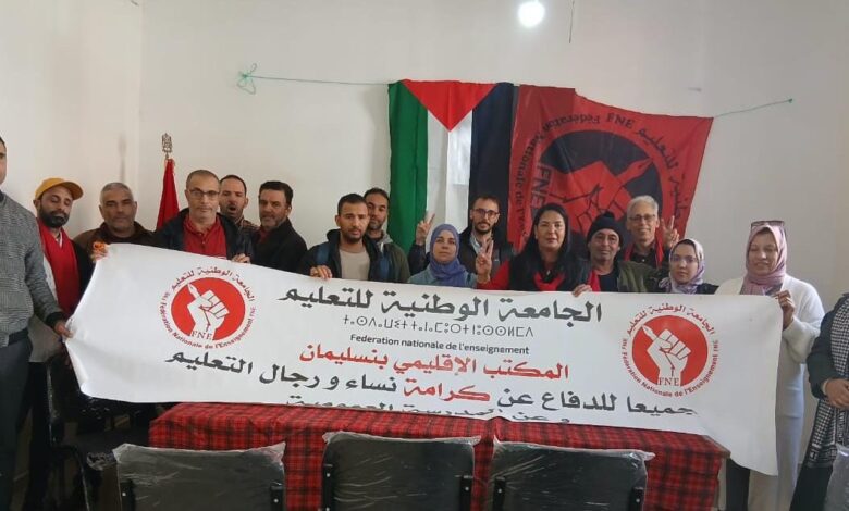 تنفيذا لمقتضيات القانون الأساسي للجامعة الوطنية للتعليم/التوجه الديمقراطي، وتفعيلا لمخرجات المجلس الوطني الأخير، وفي إطار الدينامية التنظيمية التي تعرفها الجامعة، وتحت إشراف إبراهيم النافيعي، المنتدب عن المكتب الوطني، تم بمدينة بنسليمان يوم الأحد 23 نونبر الجاري، تجديد المكتب الإقليمي للجامعة.