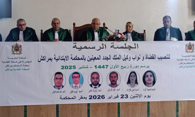 ويأتي هذا التنصيب في إطار تعزيز الموارد البشرية بالمحكمة الابتدائية بمراكش، ودعم الجهود الرامية إلى الرفع من جودة الخدمات القضائية وتسريع وتيرة البت في القضايا، بما يستجيب لانتظارات المواطنين ويكرس عدالة فعالة وقريبة من المتقاضين.